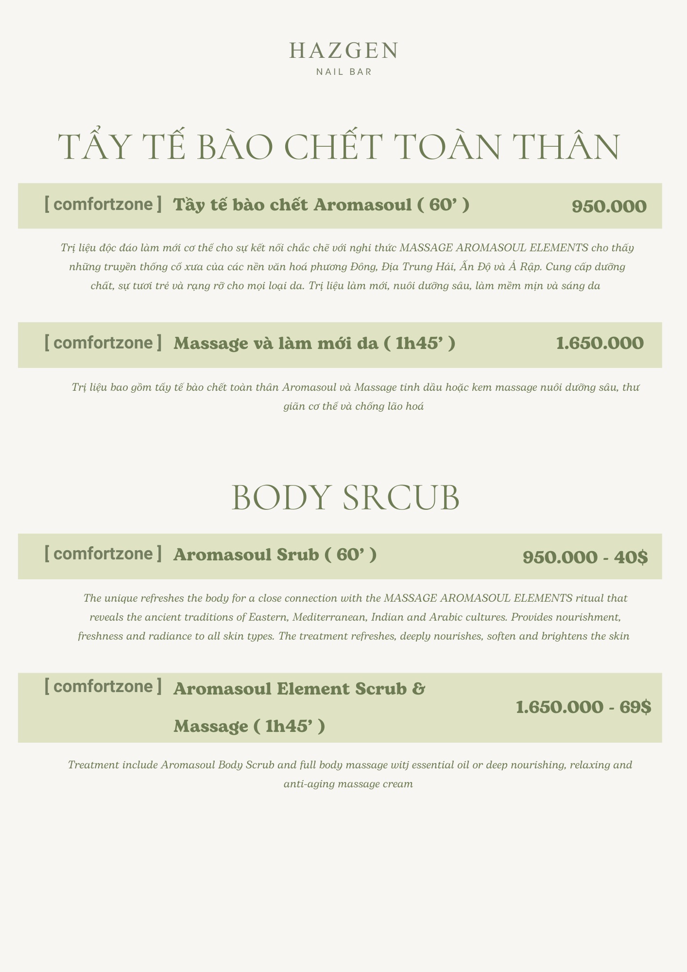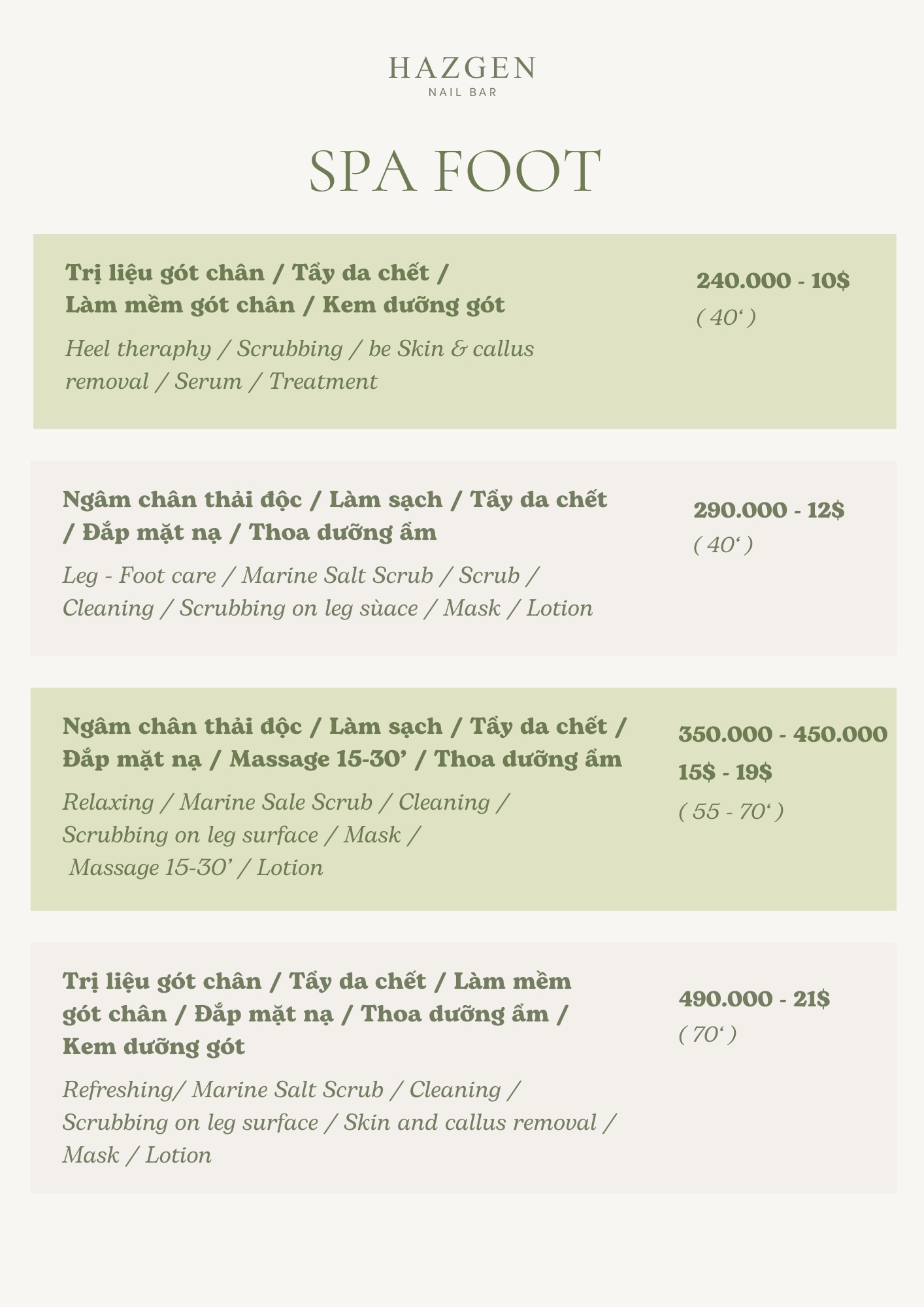 Should you require any assistance or have questions, feel free to reach out to Ms. Sarah at +84 984 666 750, who are readily available to assist you. We look forward to providing you with a relaxing and rejuvenating spa experience.