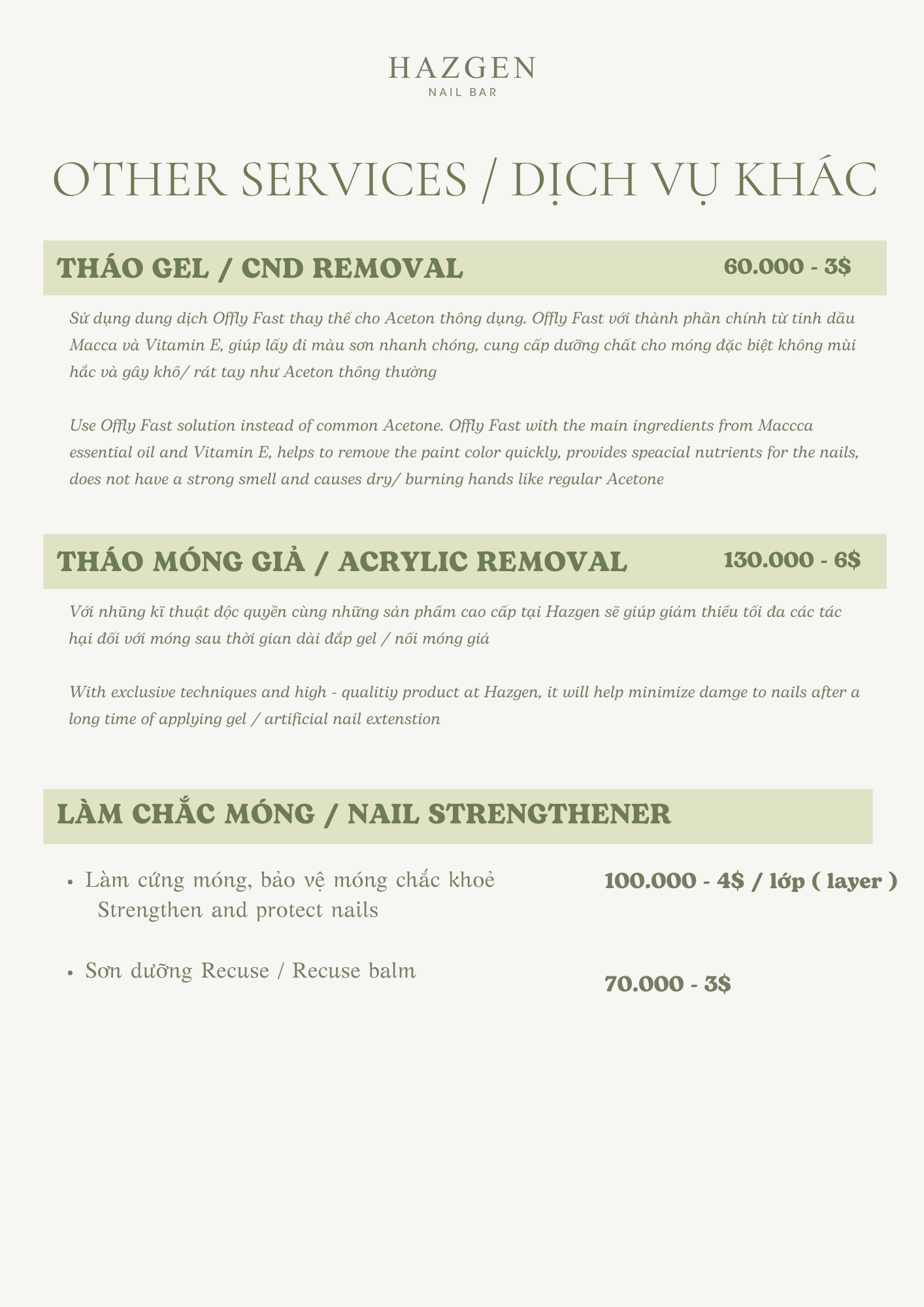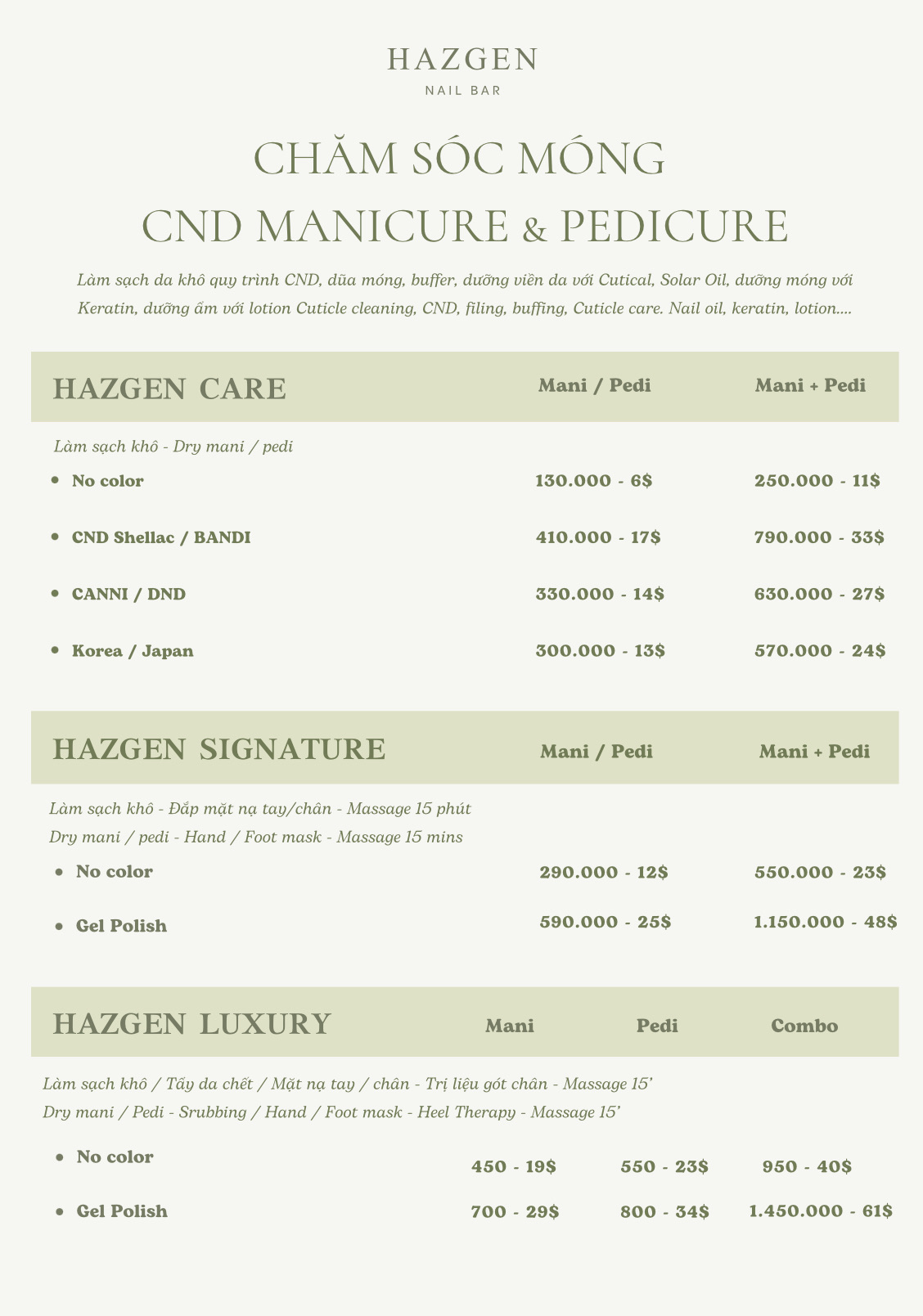 Welcome to HAZGEN NAIL BAR – where we provide relaxation and comprehensive care for your body and soul. Our tranquil and luxurious space allows you to escape the busy life and indulge in a wonderful state of relaxation.