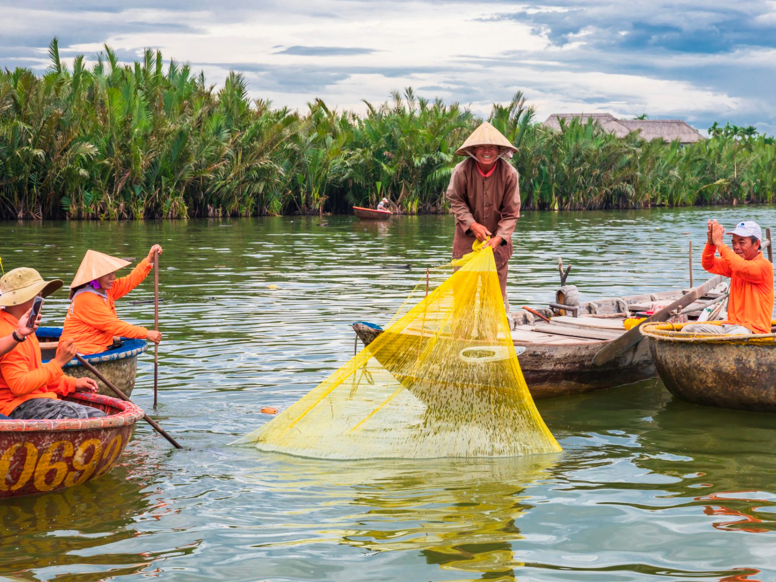 – Learn to paddle bamboo basket boats with help from the local people